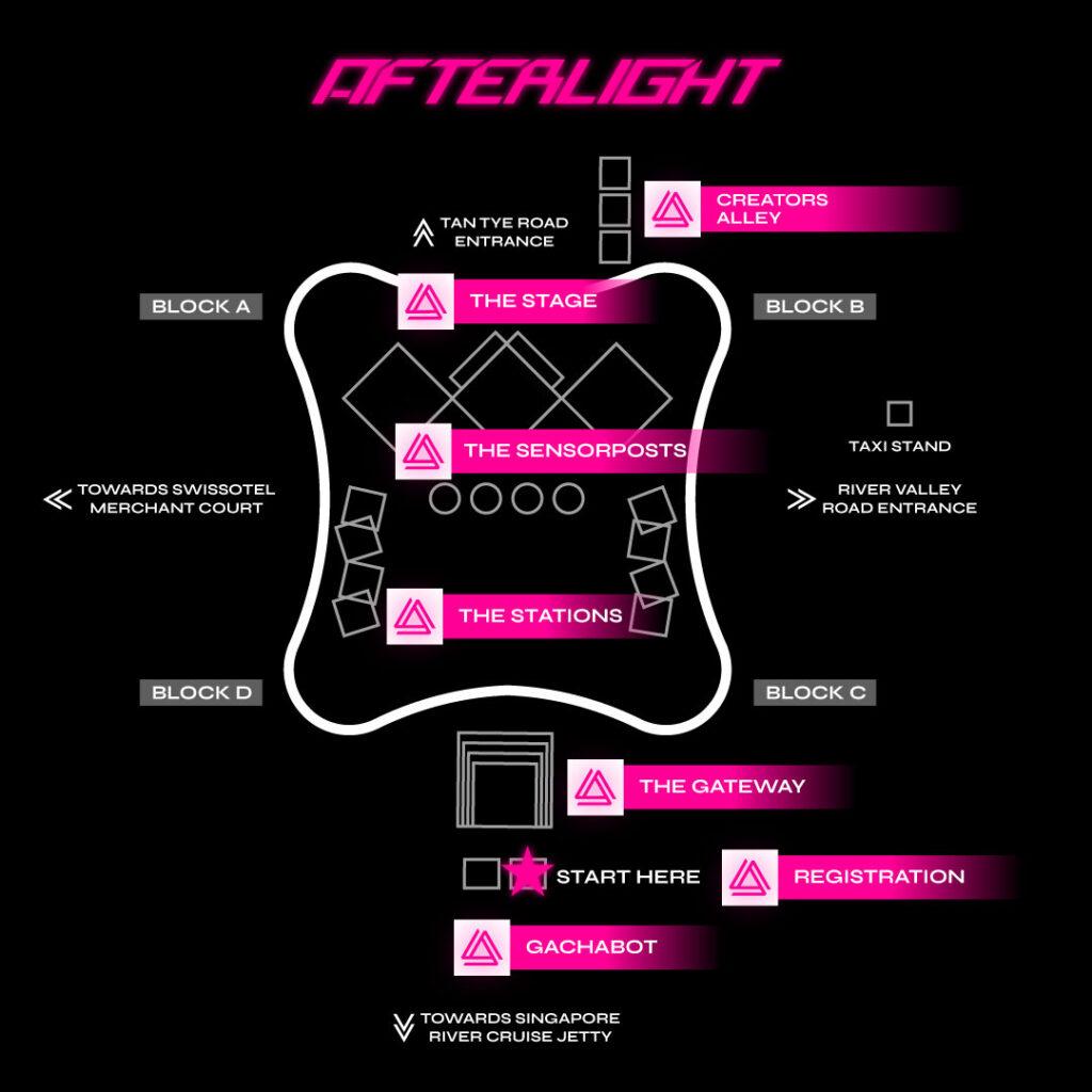 Use the Event Map to spot the key zones – from The Gateway and Stage at Afterlight Arena to Creators’ Alley.